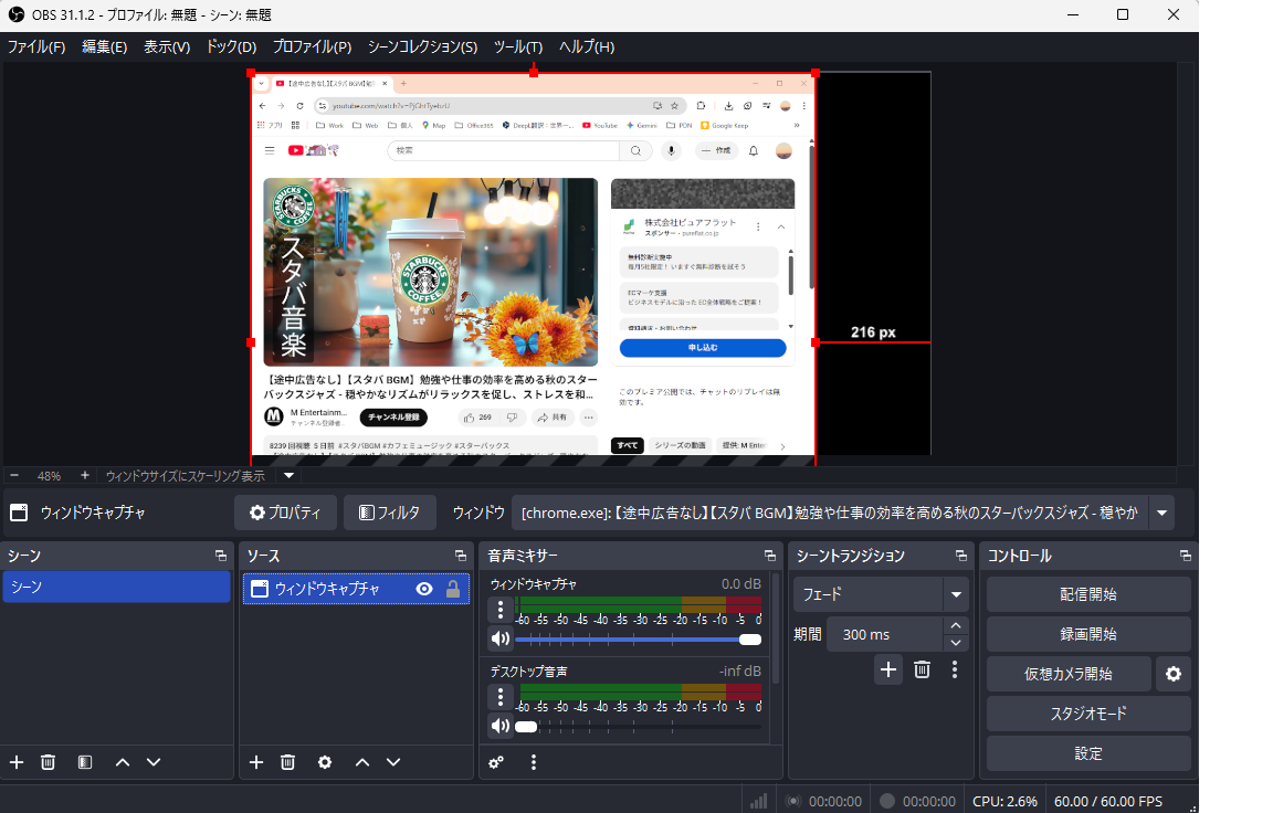 Open Broadcasting Software:本来の目的はライブ配信をするためのソフトです。